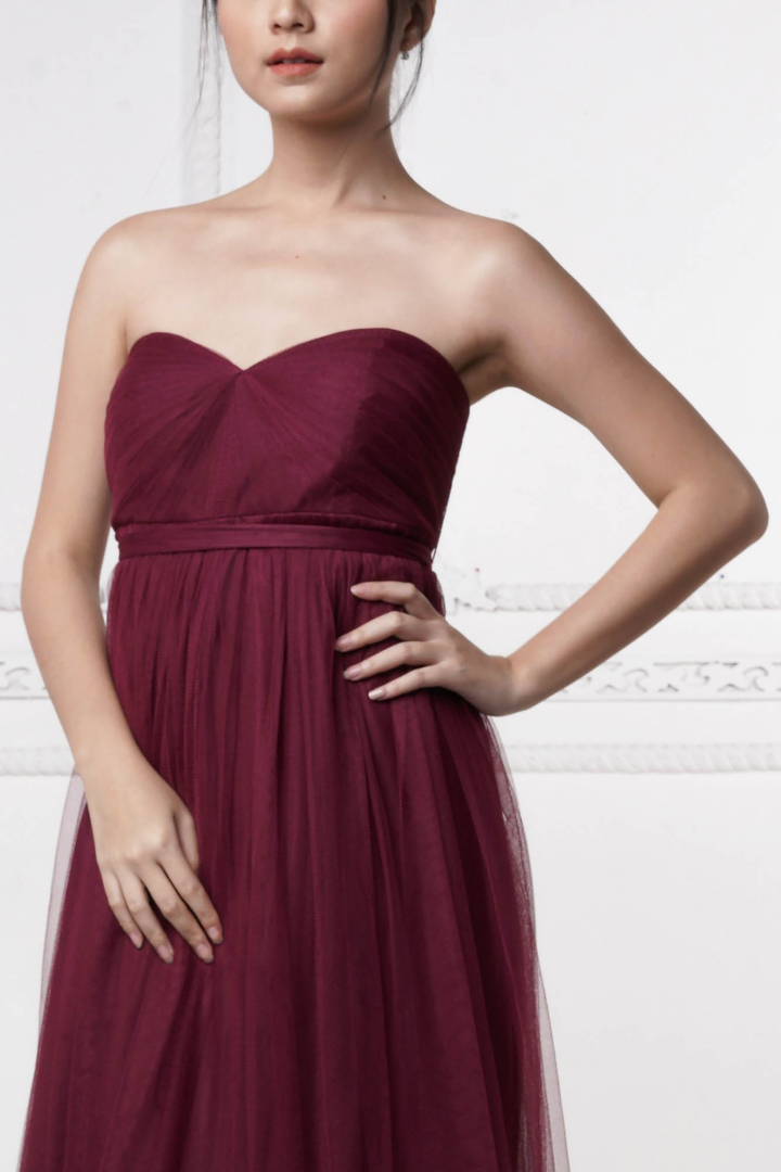 - Ethereal tulle maxi dress overall with strapless and sweetheart neckline